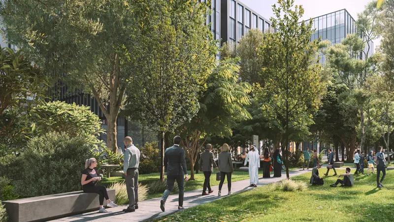 In addition to its strategic location and modern amenities, the building is committed to sustainability and environmental stewardship. Every office within the district benefits from smart solutions aimed at increasing efficiency and reducing carbon footprints. Step outside the office, and you’ll find yourself immersed in a world of convenience and leisure. The district’s ‘green spine’ offers a tranquil retreat amidst the hustle and bustle of urban life, with shaded walkways, art installations, and seating areas providing spaces for relaxation and reflection. A diverse array of cafes, dining establishments, and retail outlets cater to the needs of local employees.