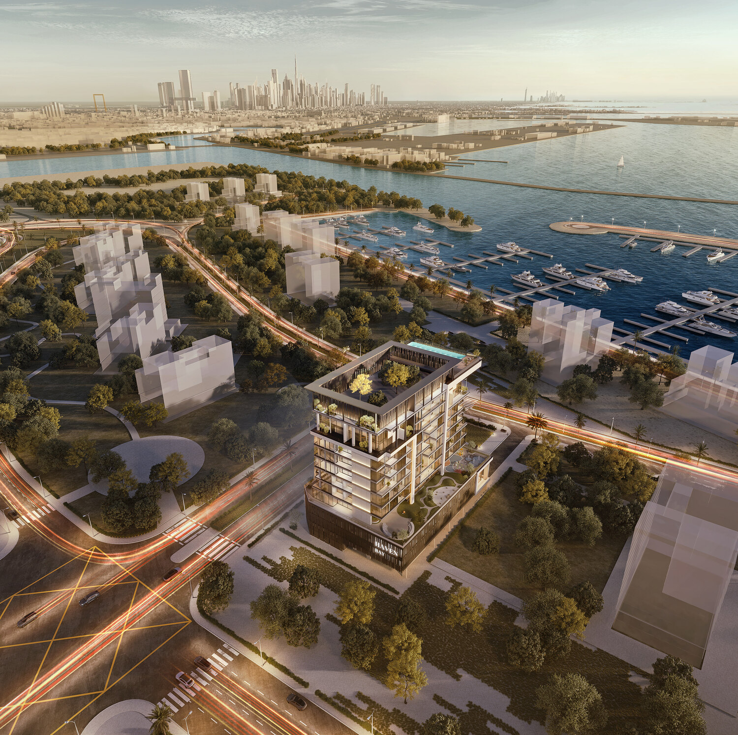 Haven Bay in Dubai Islands, Deira, this new residential project developed by Driven and Metac offers 1- to 4-bedroom apartments and duplexes, is a fusion of innovative designs and modern luxury presented in an 11-storey building comprising 64 units. with sizes ranging from 739 square feet to 6,410 square feet. Each home has been well-planned to combine comfort with elegance. They come with modern kitchens equipped with high-quality Siemens appliances, expansive panoramic windows that frame breathtaking views of the marina and a neutral palette that brings in serenity. High-end finishes add a touch of luxury, while spacious layouts maximize both, living space and functionality. Overall, the architectural design of this complex exudes a modern sophistication with clean lines complemented by contemporary aesthetics.
