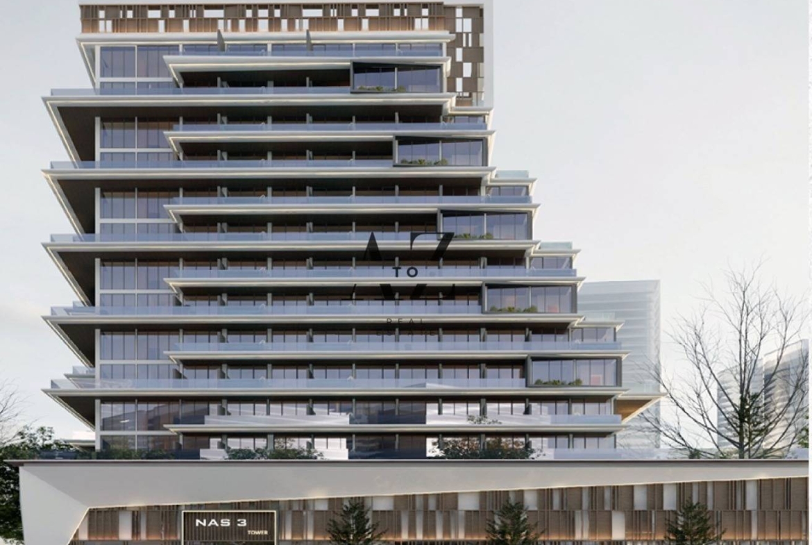 The apartment features a modern open kitchen fitted with appliances and is offered unfurnished, allowing you to customize the space to your taste. NAS 3 provides beautifully designed amenities, ensuring a comfortable and contemporary lifestyle.