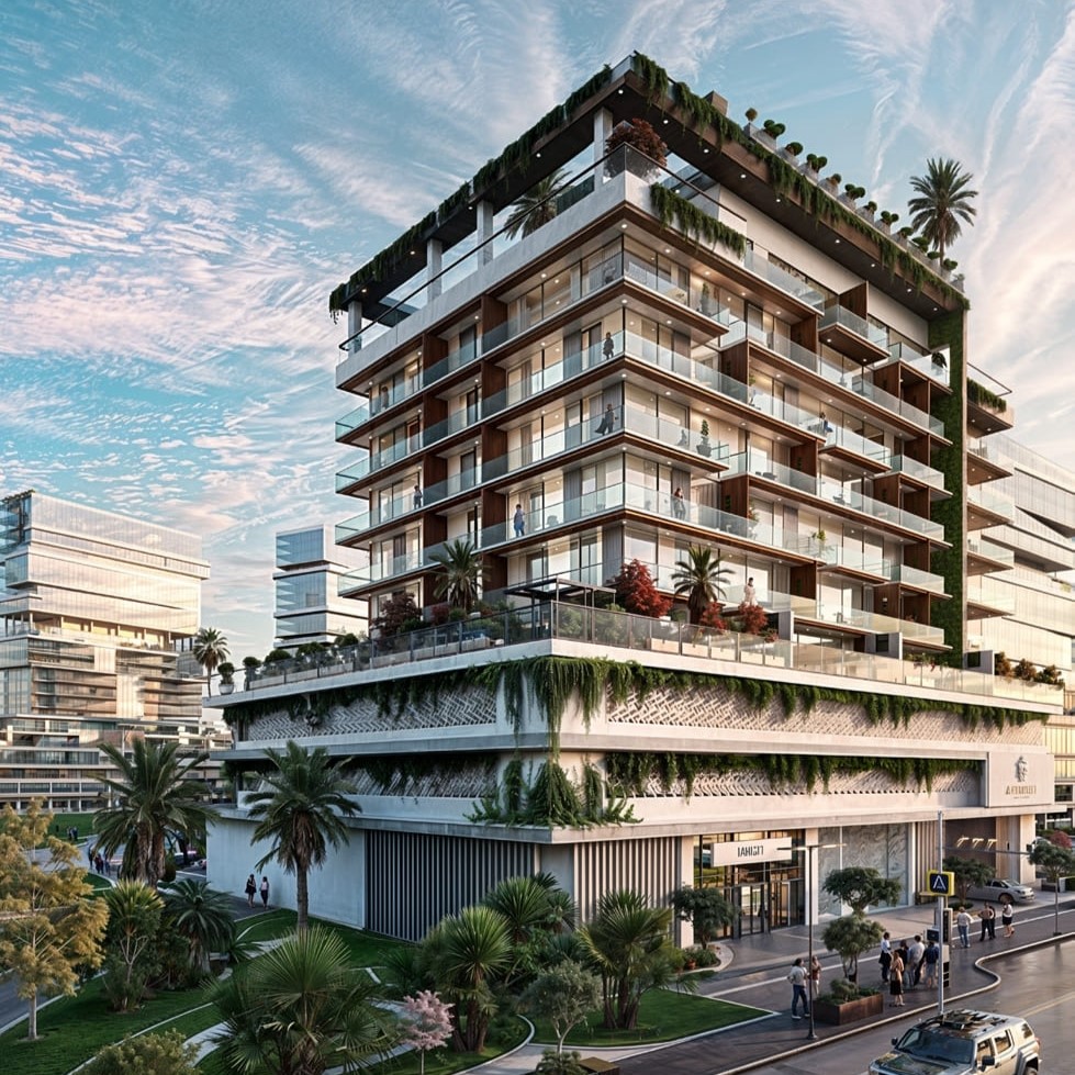 Residents of Heaven Views are treated to a remarkable set of amenities designed to enhance their daily living. The rooftop features a magnificent infinity pool with panoramic views, offering the perfect escape within the city. Other communal areas include beautifully landscaped gardens, yoga zones, mini-golf, reading and relaxation spaces, and elegantly furnished terraces that invite outdoor living at its best.