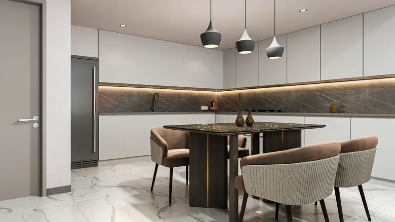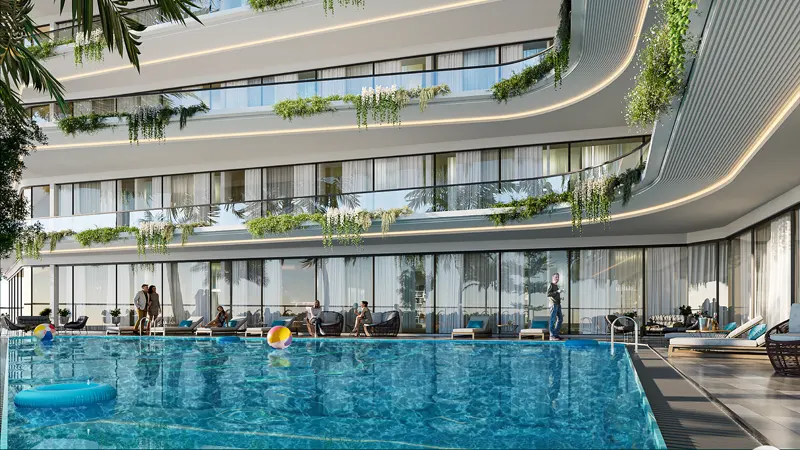 International Airport. Milos offers a unique blend of modern elegance and natural serenity, with stunning poolside balconies and terraces that provide a perfect retreat from the bustling city life. Each detail of our building has been meticulously crafted to create a harmonious blend of indoor and outdoor living spaces, allowing residents to enjoy the beauty of Dubai skyline from the comfort of their own home.