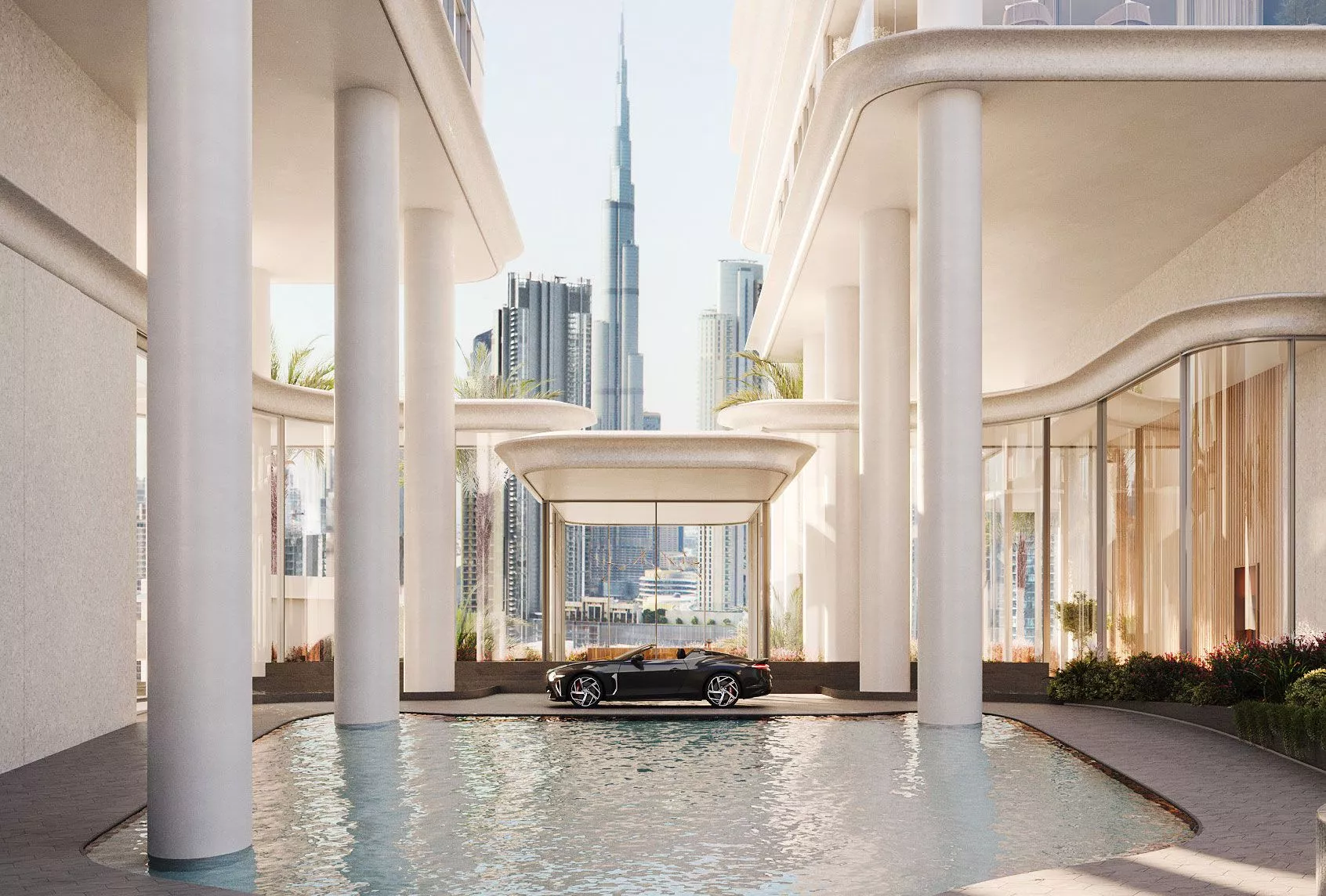 On the podium will be meeting rooms, a private spa, an indoor lap pool, a children’s pool, direct promenade access and golf car service to 2 other developments by OMNIYAT – the VELA complex and the LANA hotel.