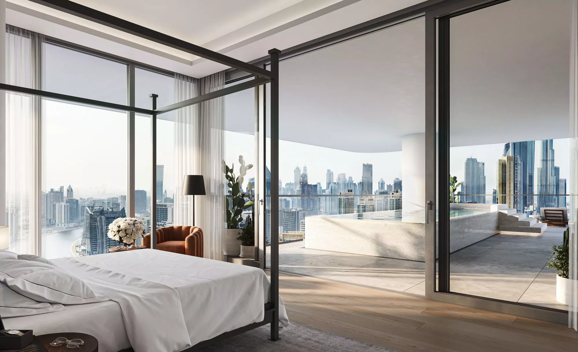 The layouts of the stunning residences feature spacious terraces which will allow you to enjoy fantastic views of Marasi Bay, Downtown Dubai and the Burj Khalifa. Select units come with private swimming pools, which will create a resort-like atmosphere right in your home. To create an exceptional arrival experience, the lift will open directly into the apartment.